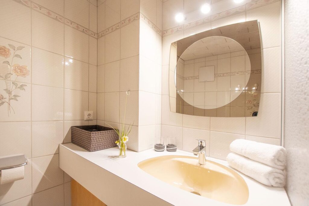 - Ein Handtuch-Set pro Person (großes & kleines Handtuch) sowie ein Badevorleger
